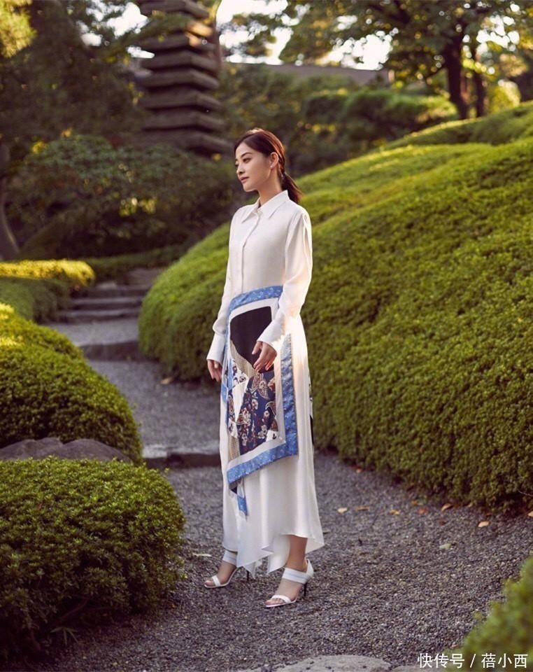 身上这件白衬衫看上去较为正式,门襟扣子全部是扣上的,袖子自然垂下,没有选择挽起来。再来说说版型,不是紧身款,也不是特别宽松,自带的些许松量刚好可以凸显身材曲线。平日穿白衬衫时,许多时髦精下身会搭一件半身裙,梅婷身上的裙子可不简单。
